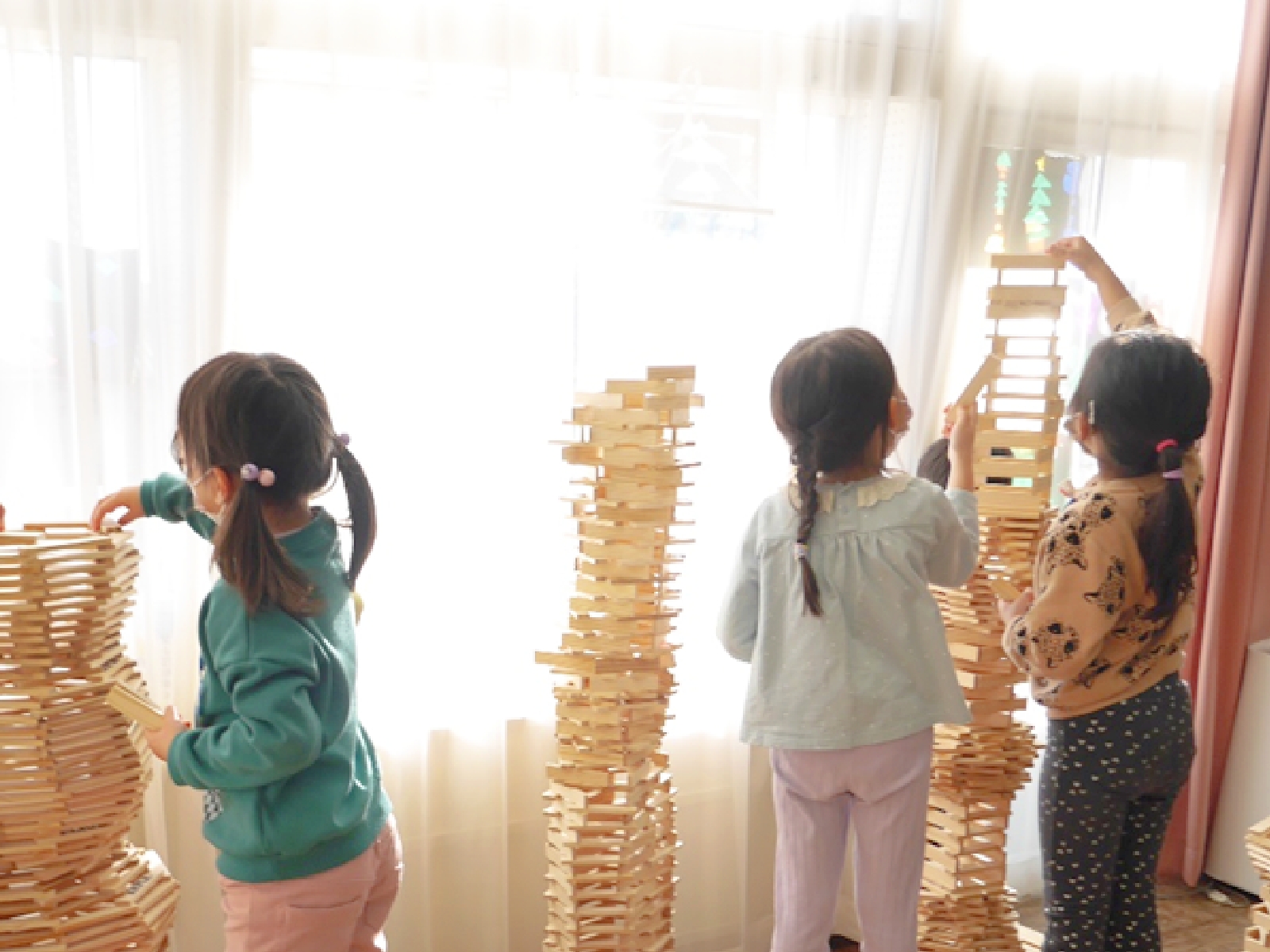 4歳児は集団での生活に慣れてくる時期です。子ども同士の繋がりも出来、集団生活の中で、その子らしさを発揮しながら過ごせる様になっていきます。